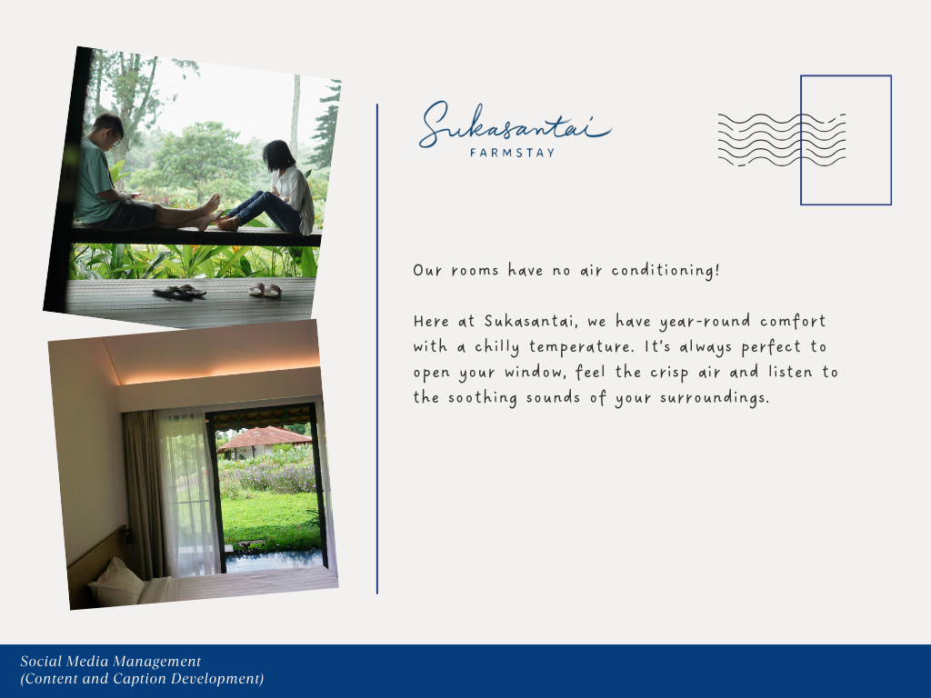 We don’t just write captions; we capture Sukasantai’s dedication to nature and relaxation. Our words are crafted to connect deeply with visitors through personalized descriptions and resonant narratives.
